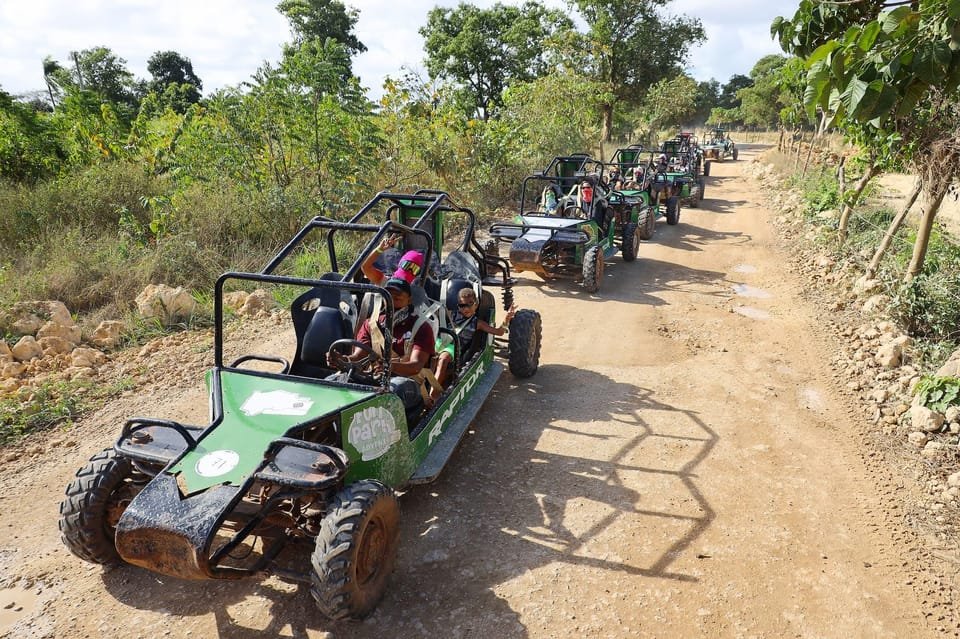 Your journey starts with the thrill of ziplining, where you’ll soar across lush landscapes, followed by a heart-pumping buggy tour, offering both adrenaline and picturesque views. The adventure continues at Atabey Park, inviting you to plunge into the refreshing waters of an artificial cave, a perfect blend of excitement and relaxation.